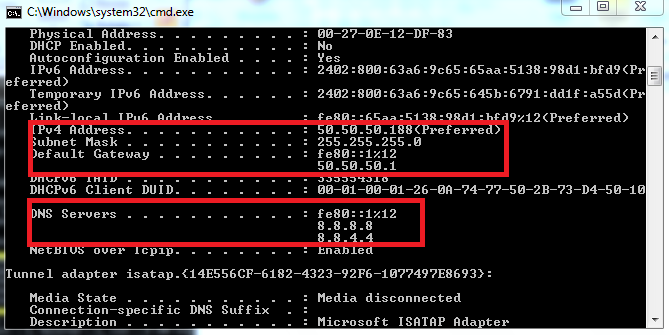- thông mạng sẽ báo: Reply from 50.50.50.254 bytes=32 time<1ms TTL=255.